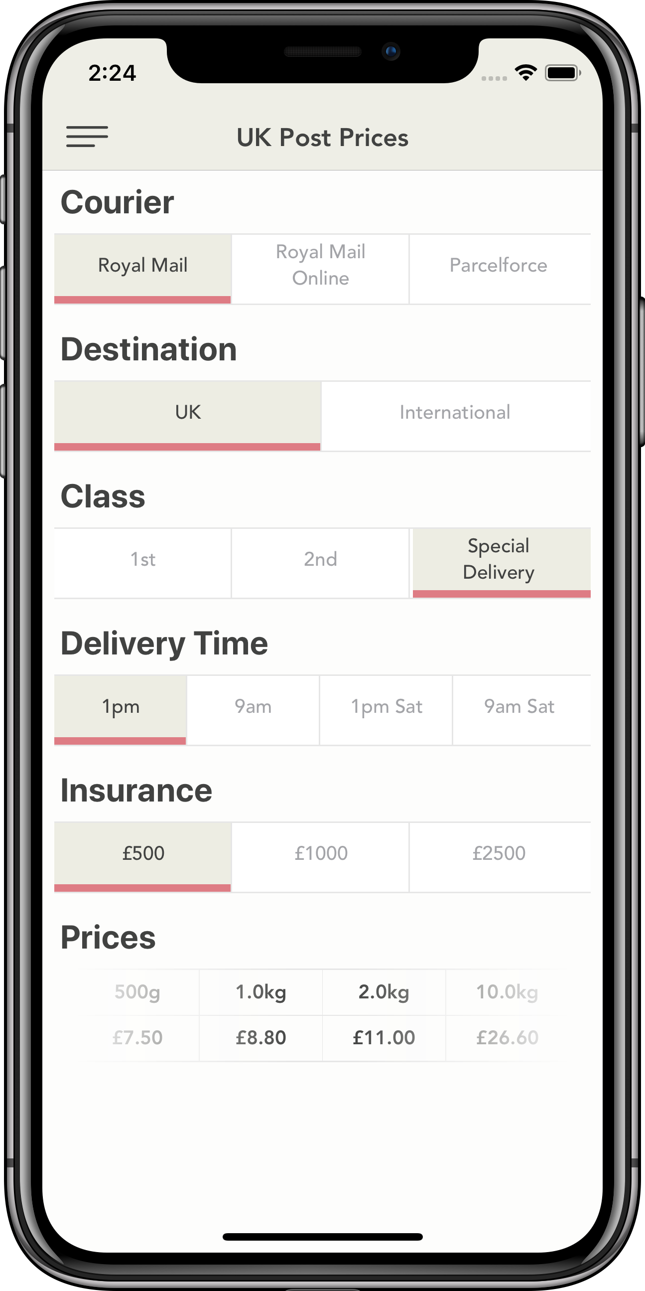 UK Post Prices works great on all screen sizes from the smallest smart phone upto the largest Mac.